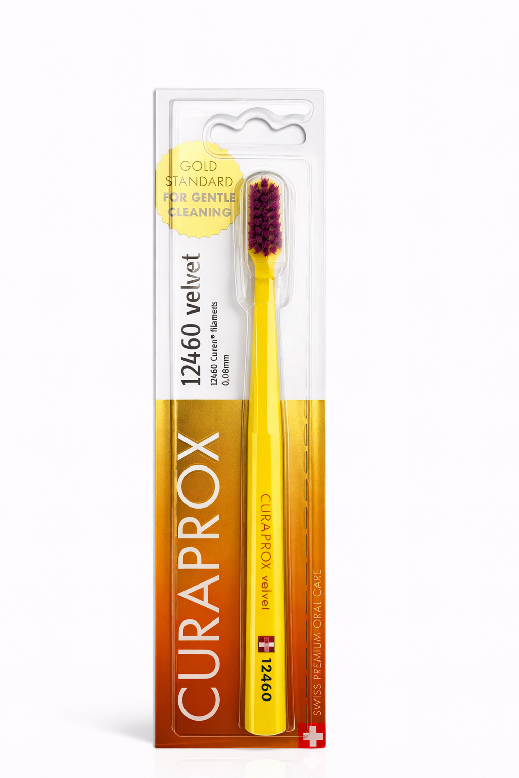 Dzięki aksamitnie delikatnej szczoteczce Curaprox CS 12460 Velvet niwelujemy procesy wycierania szkliwa zębów co stanowi przyczynę ciemnienia zębów wraz z postępującym wiekiem.