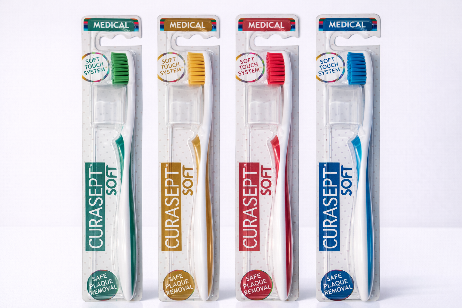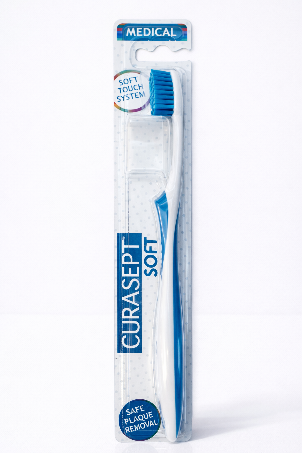 Szczoteczka manualna do mycia zębów Curasept MEDICAL została opracowana z myślą o osobach w trakcie leczenia przyzębia i jest również rekomendowana do stosowania z produktami Curasept z systemem ADS .