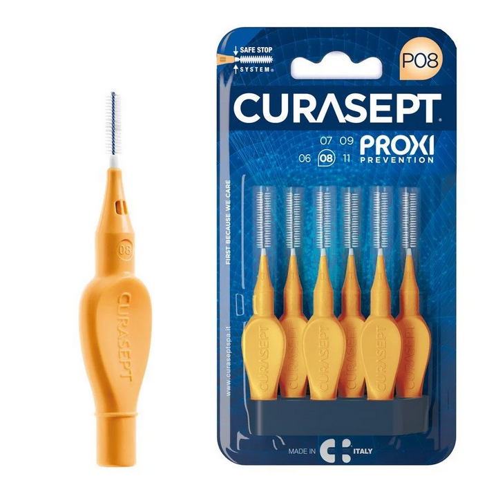 Curasept Proxi P08 to profesjonalna szczoteczka międzyzębowa, stworzona do skutecznej higieny przestrzeni międzyzębowych, które są trudno dostępne dla tradycyjnych szczoteczek do zębów. Idealna do codziennego usuwania płytki nazębnej i resztek jedzenia, wspomaga profilaktykę próchnicy oraz zapobiega stanom zapalnym dziąseł.