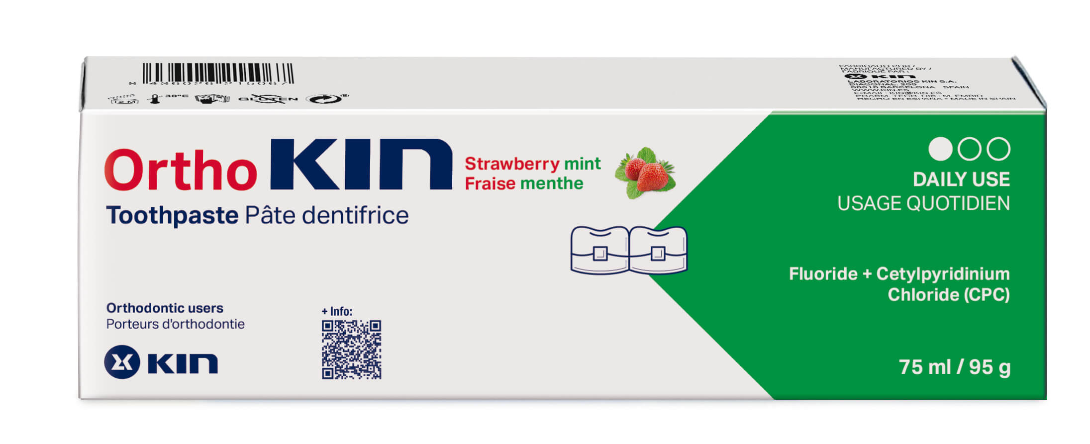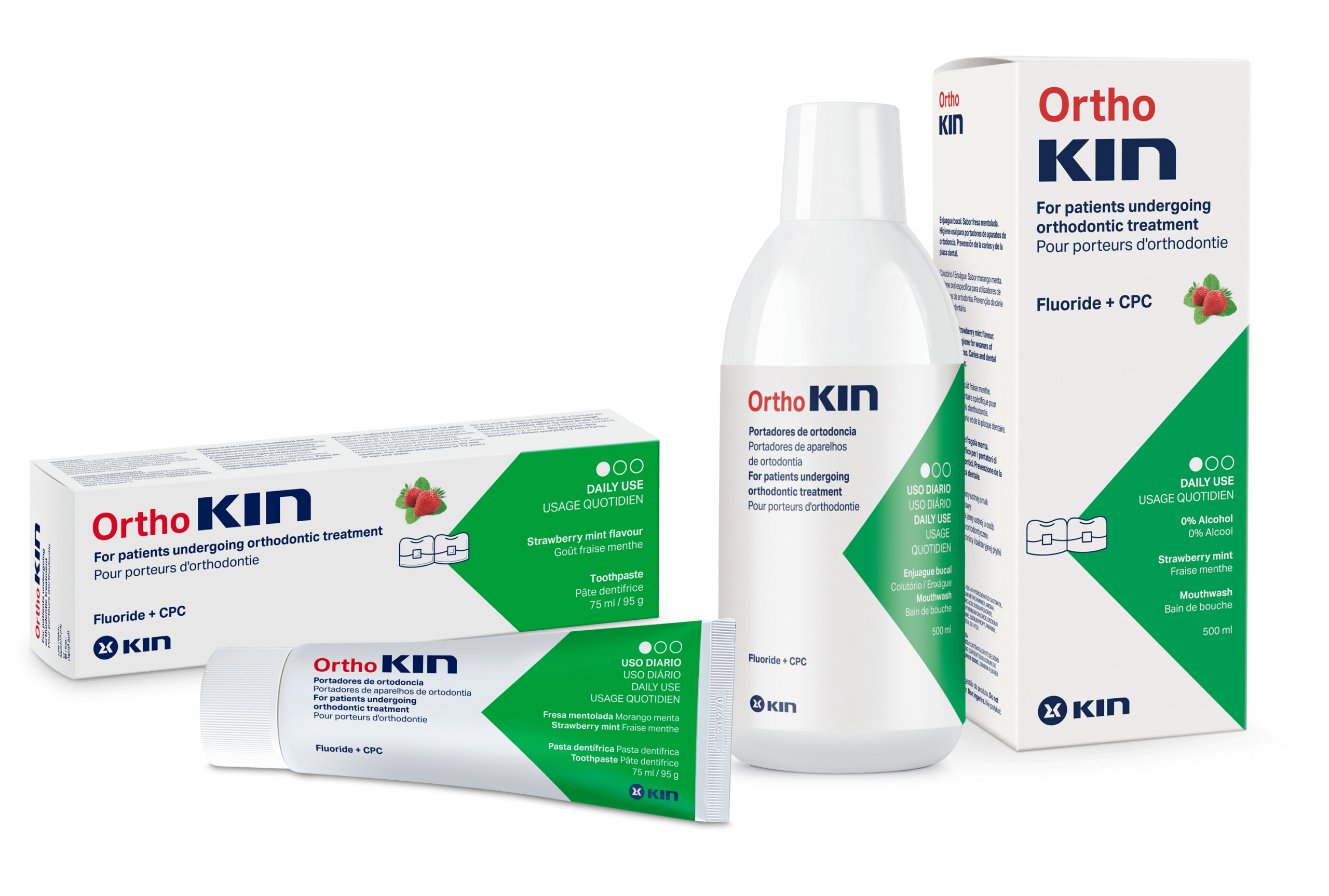 W jamie ustnej obecnych jest wiele mikroorganizmów odpowiedzialnych za tworzenie się płytki bakteryjnej co, w konsekwencji, prowadzi do stanów zapalnych dziąseł i chorób przyzębia. Powstawanie płytki bakteryjnej oraz zaleganie resztek pokarmowych nasilone jest u pacjentów leczonych aparatami ortodontycznymi, co zwiększa ryzyko pojawienia się zapalnych zmian w jamie ustnej i próchnicy. Dzięki połączeniu chlorhexydyny o niskim stężeniu i cynku OrthoKIN posiada wzmocnione i przedłużone działanie bakteriostatyczne hamując rozwój mikroorganizmów tworzących płytkę bakteryjną. Zawartość fluorku sodu wspomaga remineralizację szkliwa chroniąc zęby przed próchnicą.