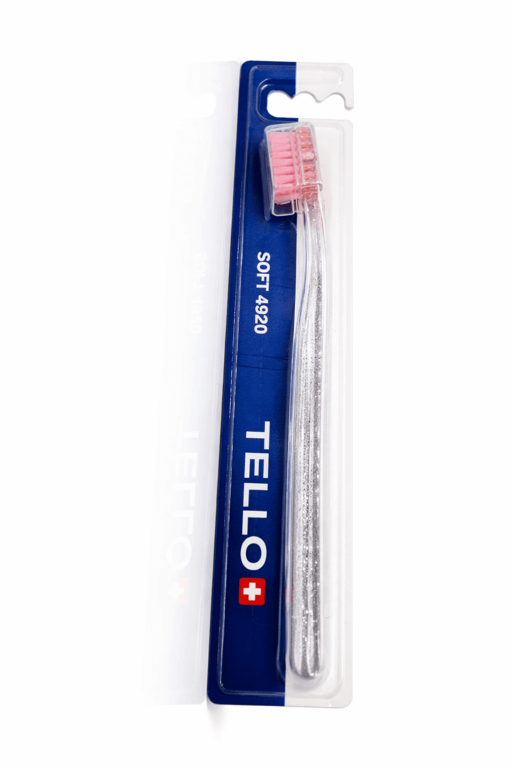 Szwajcarska marka premium TELLO 4920 Soft dedykowana jest osobom z wrażliwymi dziąsłami, częstymi krwawieniami, bolesnymi dziąsłami, nadwrażliwością szkliwa, problemem odsłaniających się szyjek zębowych. Zalecana przy higienie implantów i innych prac protetycznych.