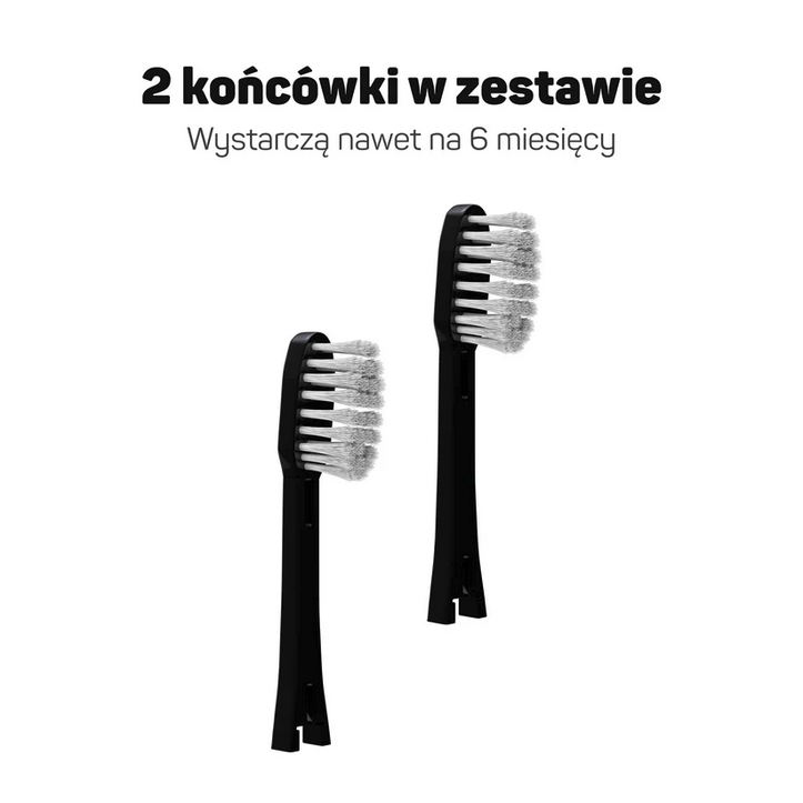 Każdy zestaw zawiera 2 wymienne końcówki, które można łatwo wymienić, zapewniając długotrwałe i higieniczne użytkowanie szczoteczki.