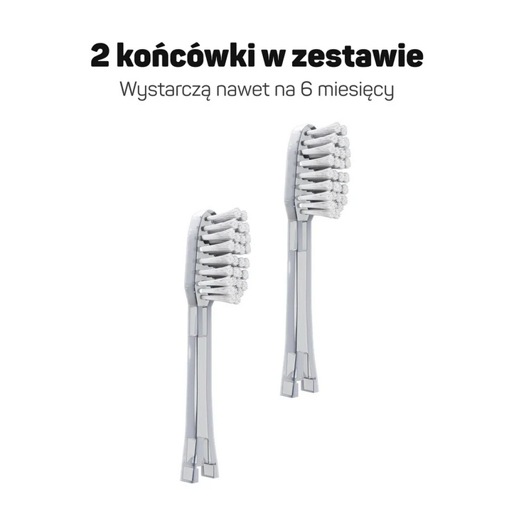Każdy zestaw zawiera 2 wymienne końcówki, co umożliwia ich łatwą wymianę i długotrwałe użytkowanie szczoteczki.