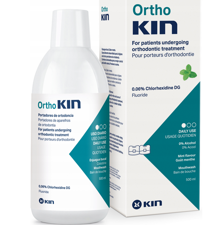 W jamie ustnej obecnych jest wiele mikroorganizmów odpowiedzialnych za tworzenie się płytki bakteryjnej co, w konsekwencji, prowadzi do stanów zapalnych dziąseł i chorób przyzębia. Powstawanie płytki bakteryjnej oraz zaleganie resztek pokarmowych nasilone jest u pacjentów leczonych aparatami ortodontycznymi, co zwiększa ryzyko pojawienia się zapalnych zmian w jamie ustnej i próchnicy. Dzięki połączeniu chlorhexydyny o niskim stężeniu i cynku OrthoKIN posiada wzmocnione i przedłużone działanie bakteriostatyczne hamując rozwój mikroorganizmów tworzących płytkę bakteryjną. Zawartość fluorku sodu wspomaga remineralizację szkliwa chroniąc zęby przed próchnicą.